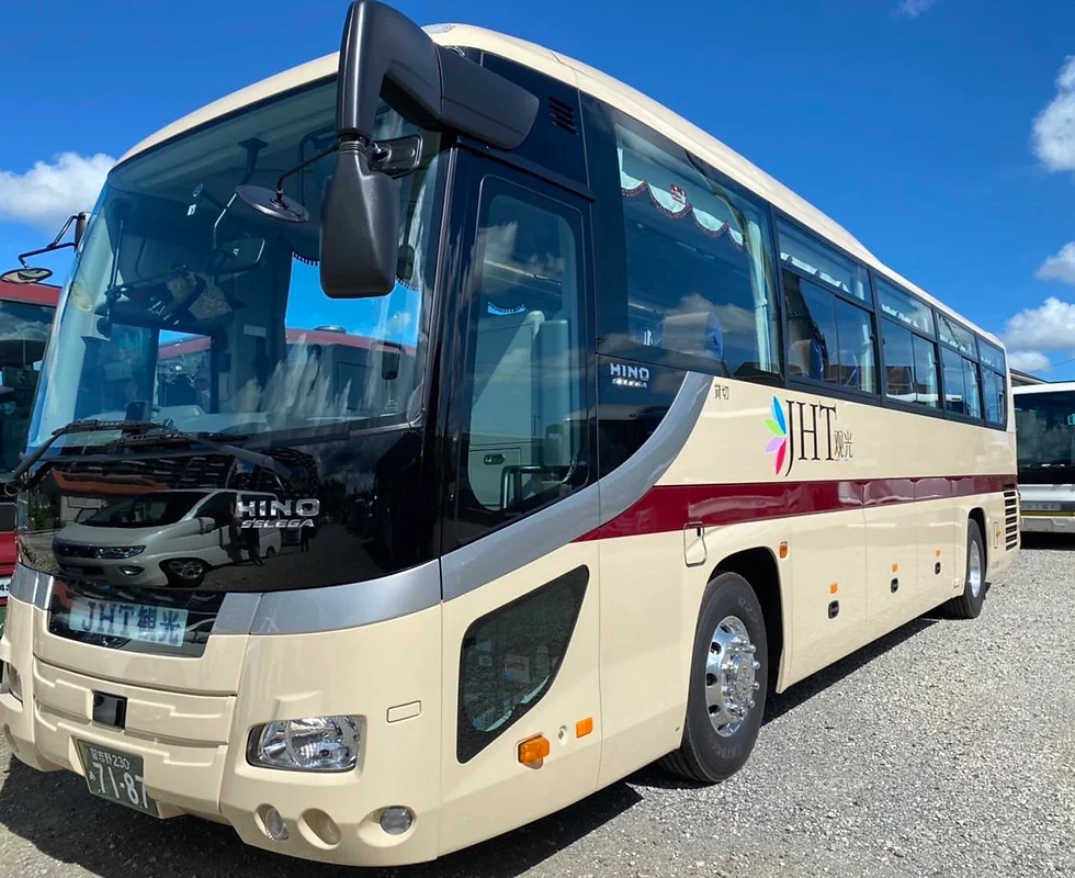 大型バスを保有、修学旅行や周年イベントの送迎など、大人数の移動も対応可能です。